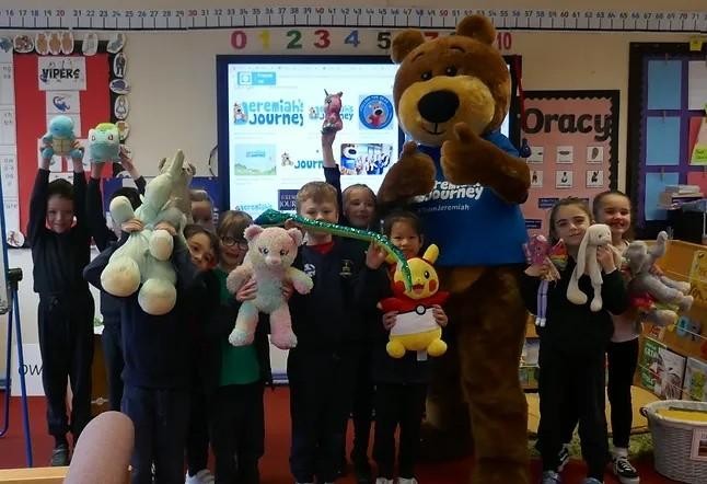 We had a 'bring your teddy to school day' to raise money for Jeremiah's Journey. We even got to meet Jeremiah! We raised £128.02.